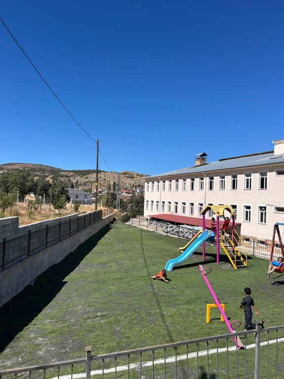 Okulumuza ait olan çocuk parkımızın zeminini suni çimle çimlendirerek öğrencilerimizin hizmetine sunulmuştur.